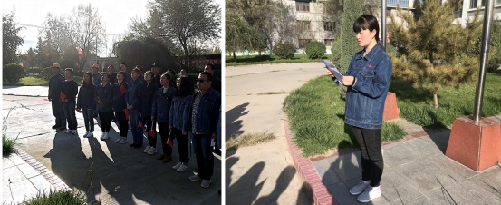 上午9時(shí)整,升起儀式正式開始,激昂的《義勇軍進(jìn)行曲》莊嚴(yán)響起,擎旗手揮臂揚(yáng)起,五星紅旗冉冉升起。全體團(tuán)員青年面向國(guó)旗列隊(duì)并行注目禮,共同祝愿?jìng)ゴ笞鎳?guó)繁榮富強(qiáng),祝福物產(chǎn)明天更加燦爛美好。