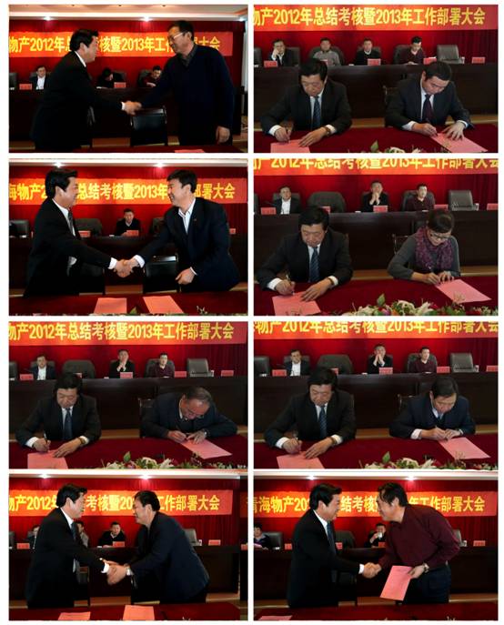 會(huì)上,由集團(tuán)總經(jīng)理王玉輝與所屬各公司、集團(tuán)各部簽訂2013年經(jīng)營業(yè)績目標(biāo)責(zé)任書,由集團(tuán)黨委書記白家林與所屬黨委(總支)、直屬黨支部簽訂黨建工作目標(biāo)管理責(zé)任書、與所屬各公司法定代表人簽訂黨風(fēng)廉政建設(shè)責(zé)任書。